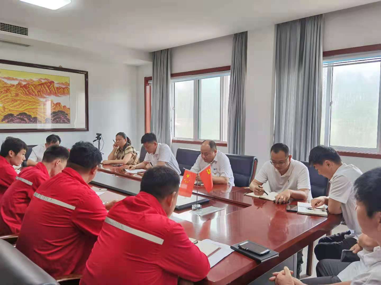 7月30日,青島能安恒信科技有限公司黨支部于水發尚東公館1樓會議室召開組織生活會,黨支部書記馮進勇同志主持,支部黨員陳文華、黃夢哲同志參加。