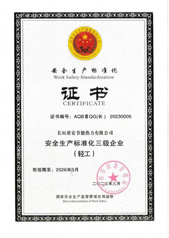 150大會戰(zhàn)|長垣盾安節(jié)能熱力公司成功取得國家級安全生產(chǎn)標準化三級證書