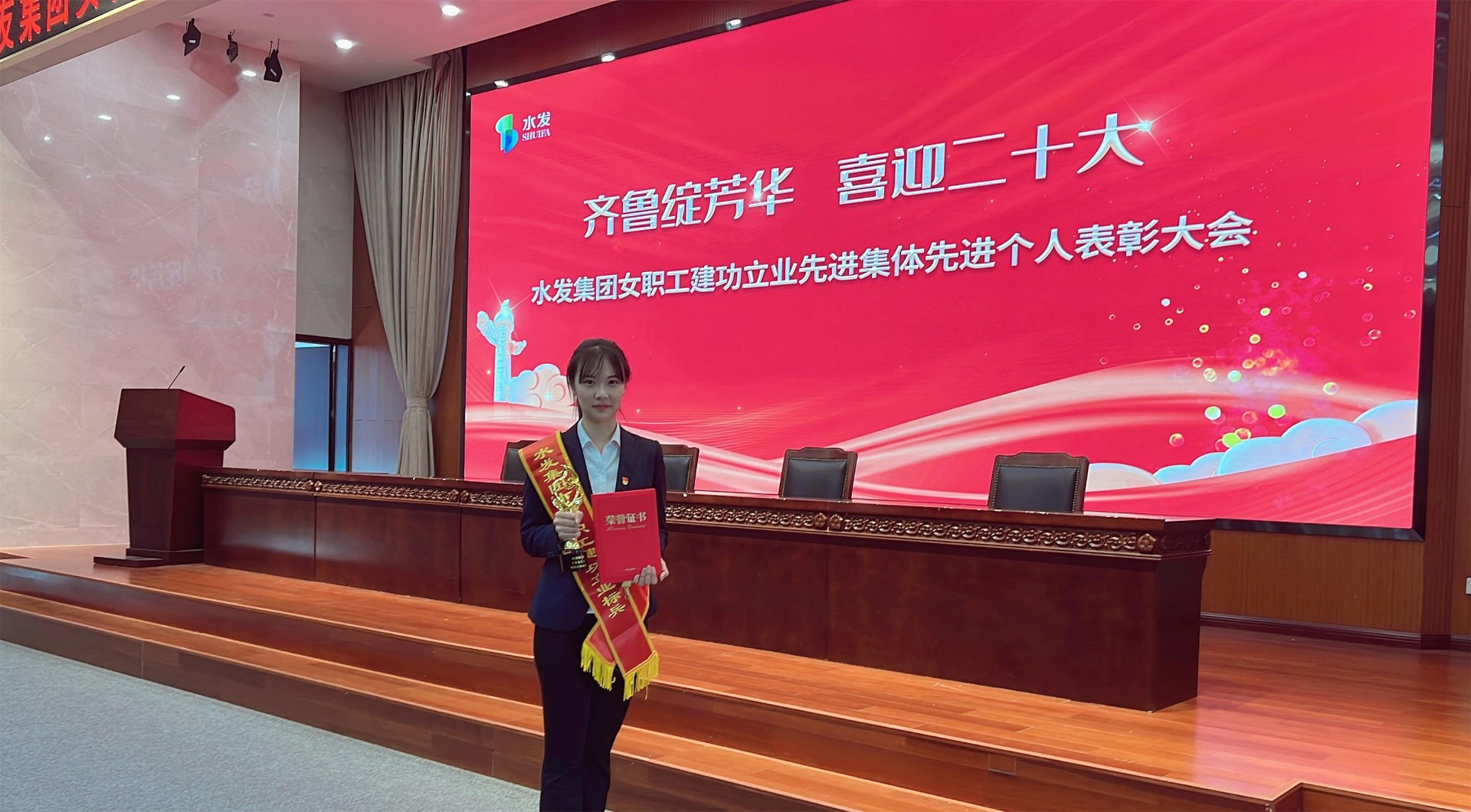 3月7日,在水發集團召開的水發集團女職工先進集體先進個人表彰大會上,山東水發新能源發展有限公司綜合部副經理敬佳湲榮獲“水發集團女職工建功立業十佳標兵”稱號,并作為四名代表之一作典型發言。